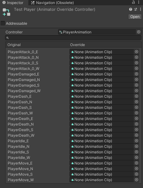 Animation Override Controller는 애니메이션 클립만 바꿔 끼우는 구조로,