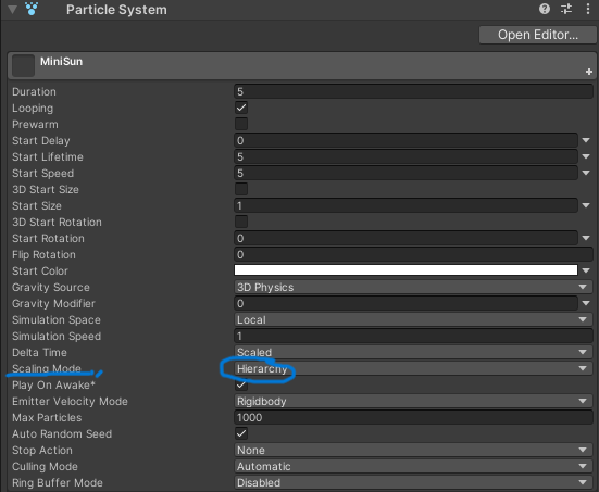 - ParticleSystem의 Main 모듈에서 개별 파티클의 시작 크기만 변경