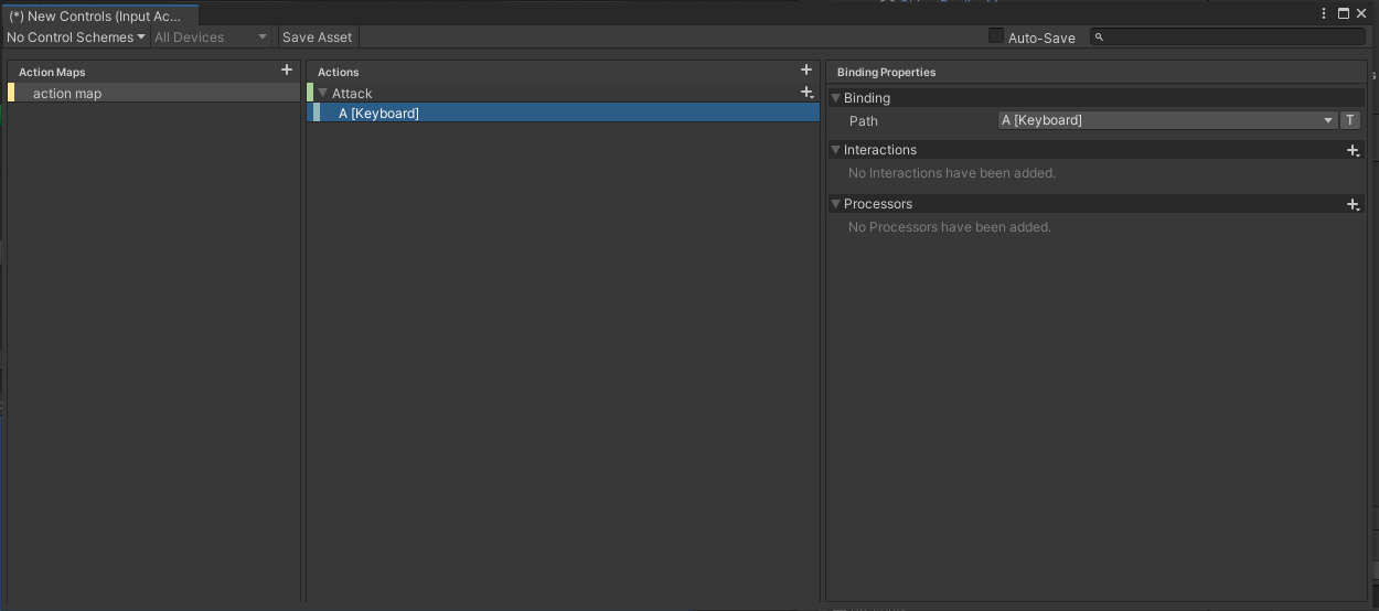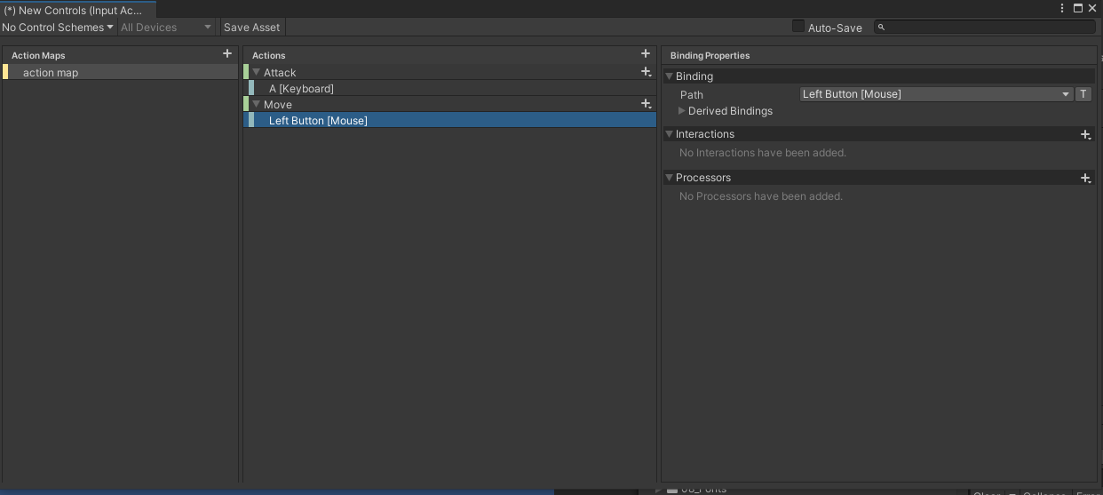 - Action Maps의 + 버튼을 눌러 사용할 액션 추가