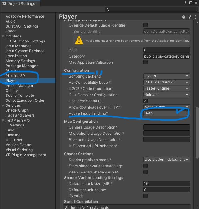 - Player Settings > Active Input Handling을 Both 또는 Input System Package (New)로 설정 가능
